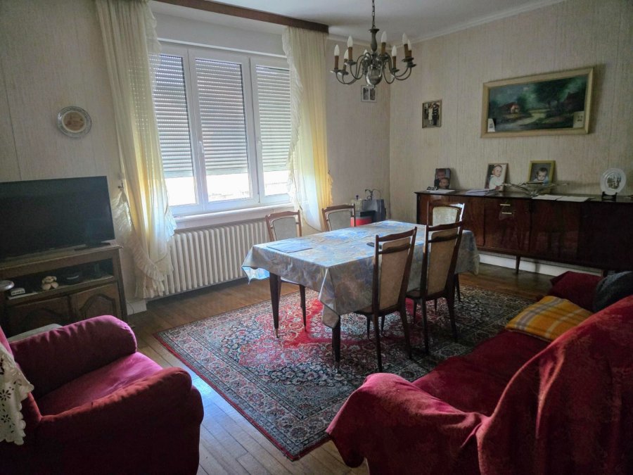 Belle maison individuelle plain pied sur sous sol, dans quartier calme, de bonne facture, (dalles pleine au niveau du RDC, et des combles à aménager). Hall, d entrée, couloir distribuant cuisine séparé, séjour, WC séparé, 3 chambres.Le sous/sol complet est composé d un garage pour 2 voiture, d une chaufferie, d une buanderie et de deux caves avec accès au jardin ( 9 ares de terrain ).Prévoir des travaux d 'isolation .